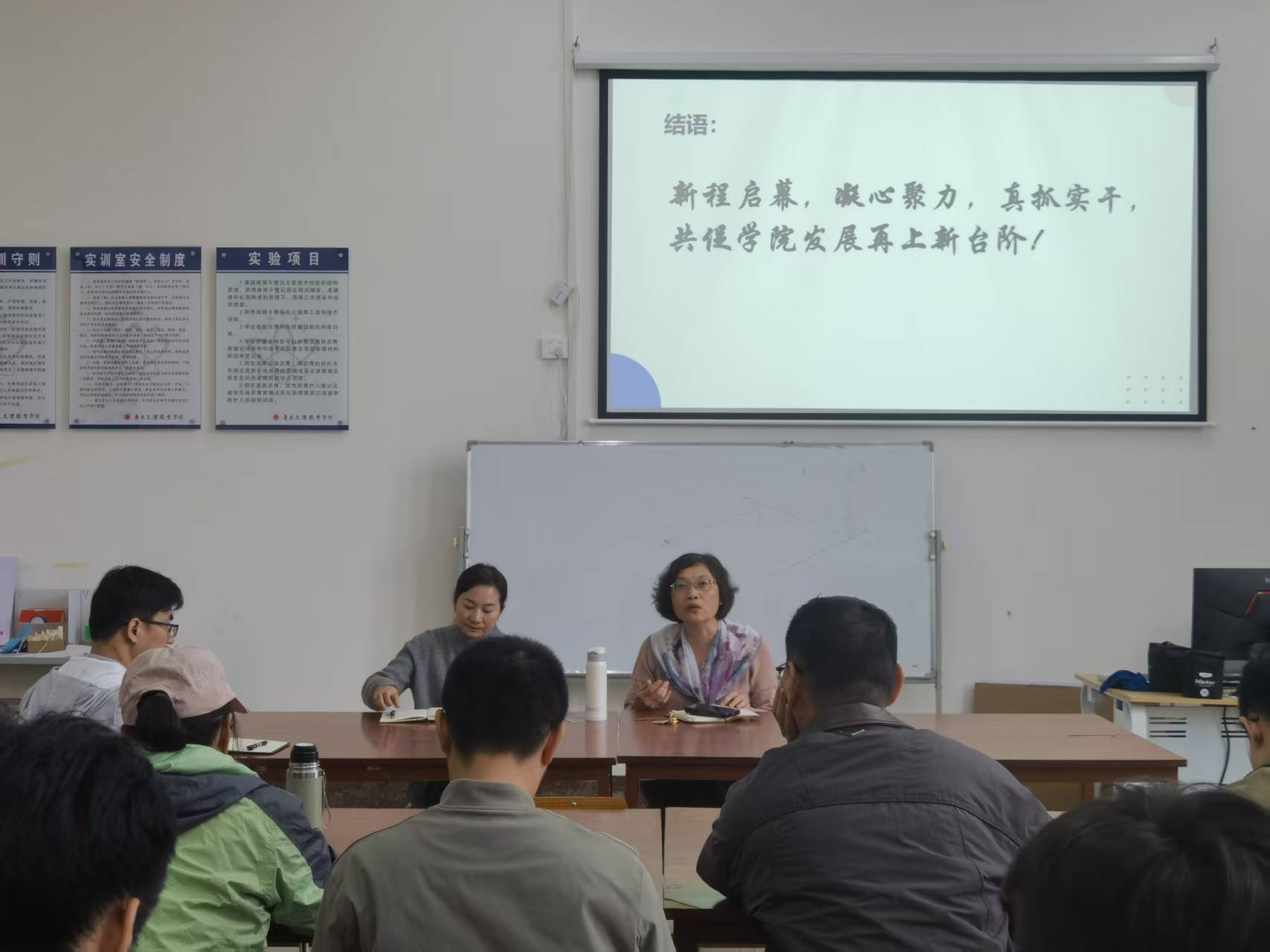 余莉莉副院长就新学期工作进行动员与部署。她首先对两位新教师的加入表示热烈欢迎,并围绕新学期工作提出了六点重要指示,为全院教师指明了奋斗方向: