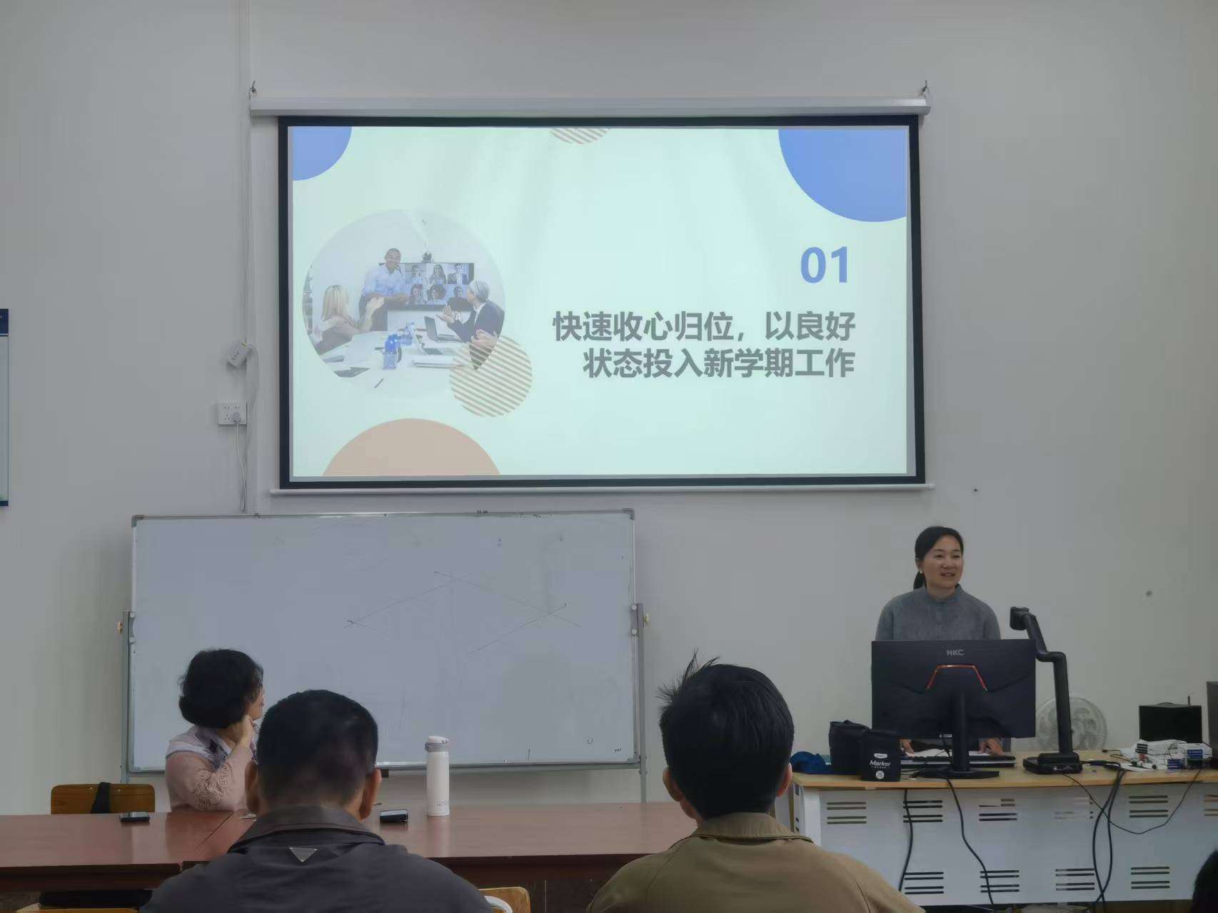 一是快速收心归位,上好“第一课”。余院长强调,全体教师需迅速从假期状态切换到工作状态,积极备课。她特别指出,课程的第一节课至关重要,必须精心设计课程介绍,激发学生学习兴趣,树立良好的课堂规矩。