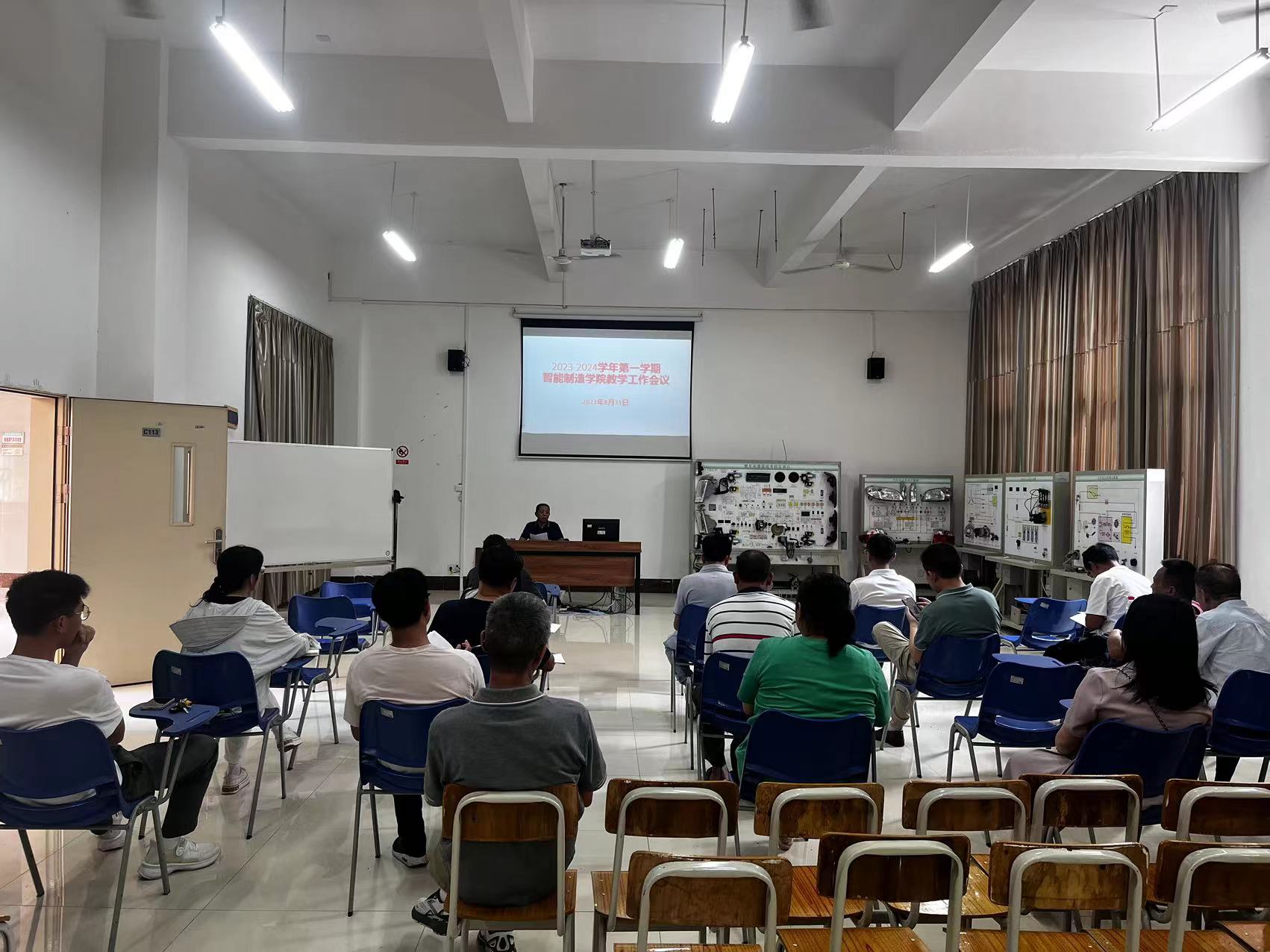 2023年8月31日下午,智能制造学院在实训楼C113召开2023--2024学年第一学期开学教师会议。智能制造学院院长李忠、副院长陈彦霖、杨根喜以及全体专兼职教师参加会议。