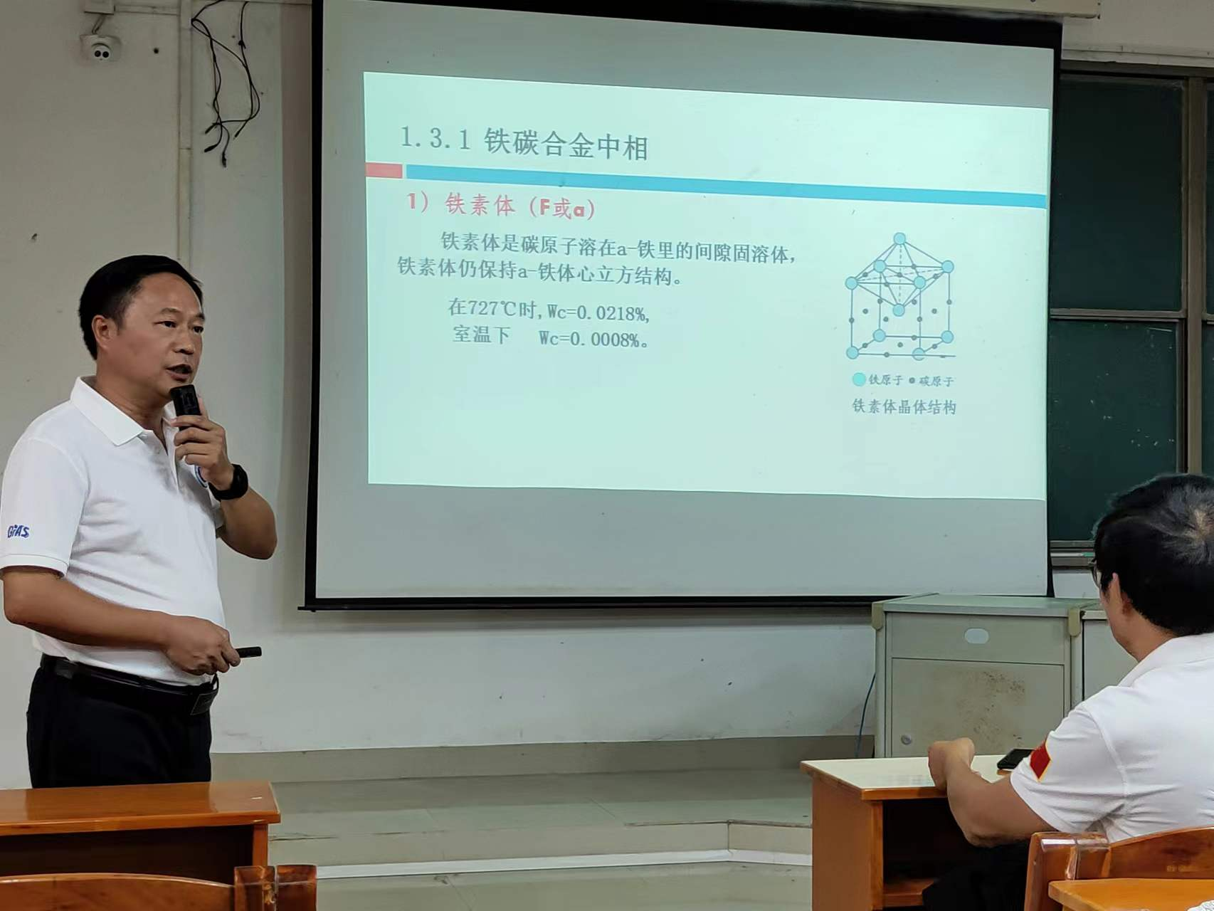 18日下午,我院杨根喜教授在教学楼A204教室讲授《机械制造基础》示范公开课。本次杨教授讲授的单元为《铁碳合金中的相及相图的基本概念》,在本次公开课中,杨教授的教学设计思路清晰,目标能力明确,知识由浅入深,完全符合职业教育的本质要求,课程思政元素融入巧妙得当,起到了润物细无声的效果。整个教学过程体现了老师主导、学生主体地位,培养学生思考、分析和解决问题的能力。杨教授教态端庄,教学准备充分,语言规范,语速适中,重点突出,层次清楚,充分展示了扎实的教学基本功和课堂设计驾驭能力,取得了良好的教学效果,得到了老师们的一致好评。