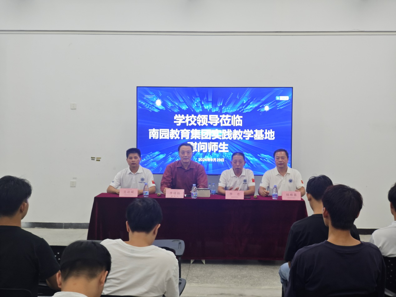 2024年9月23日,我校领导一行深入东莞南园教育实践教学基地,对正在这里紧张学习与实践的22级数控技术及机电技术一体化全体学生、授课教师及辅导员进行了亲切的慰问与深入的交流。此次慰问活动由副校长李晓豁亲自带队,教务处副处长王达斌、智能制造学院院长李忠、智能制造学院副院长杨根喜等领导随行。