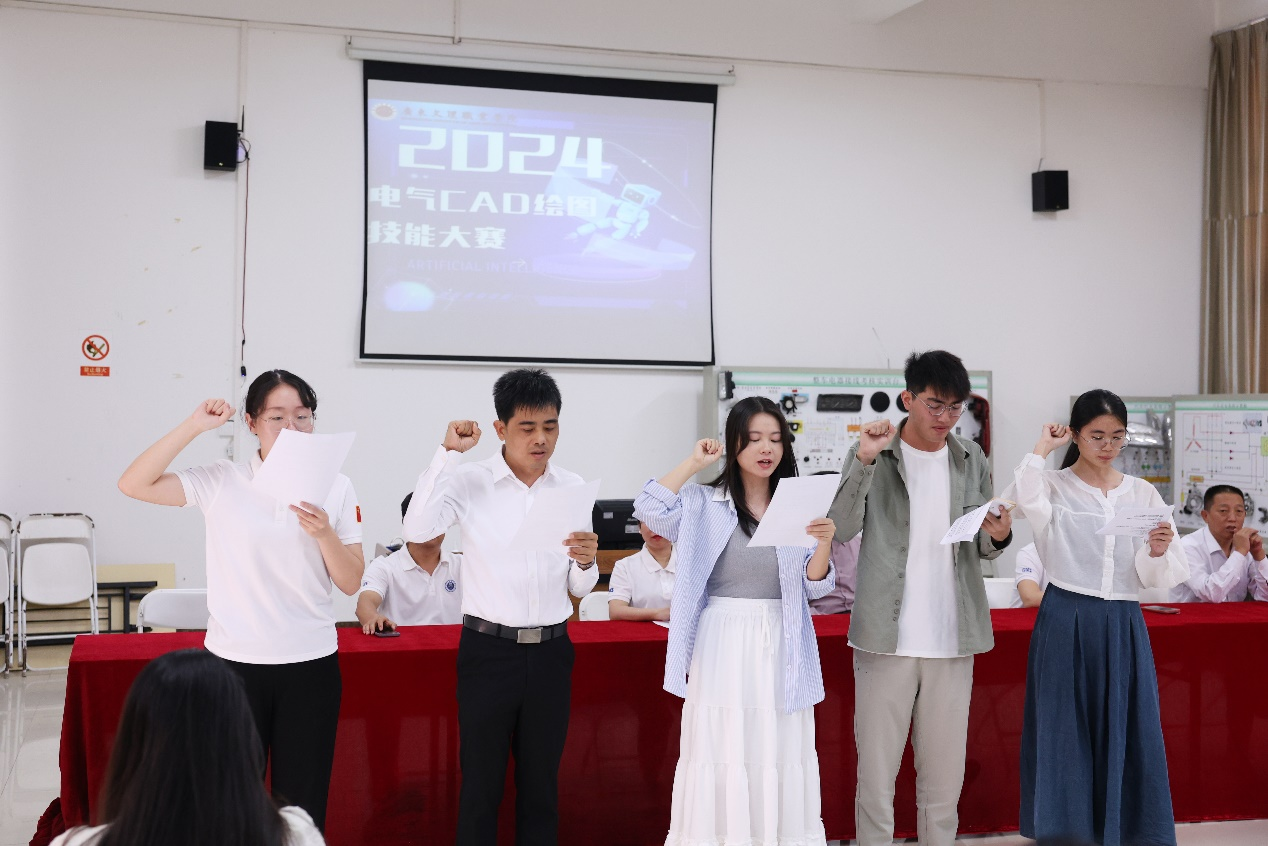 开幕式后,比赛正式开始。电气CAD竞赛在实训楼C305进行,C语言竞赛在实训楼C511进行,机械CAD竞赛则在实训楼C501进行。参赛选手们迅速投入到紧张激烈的比赛中,他们争分夺秒地操作着设备,全神贯注地完成着自己的作品。