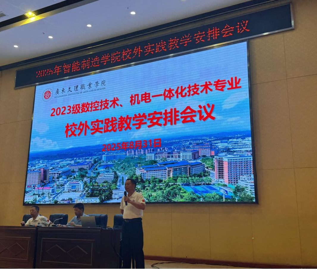 2025年8月31日16:30,学校实践培训中心联合智能制造学院在学术报告厅召开实践教学动员大会。校实训中心王达斌主任、智能制造学院领导李忠院长、杨根喜副院长、专业教师及23级两个专业全体学生参加。