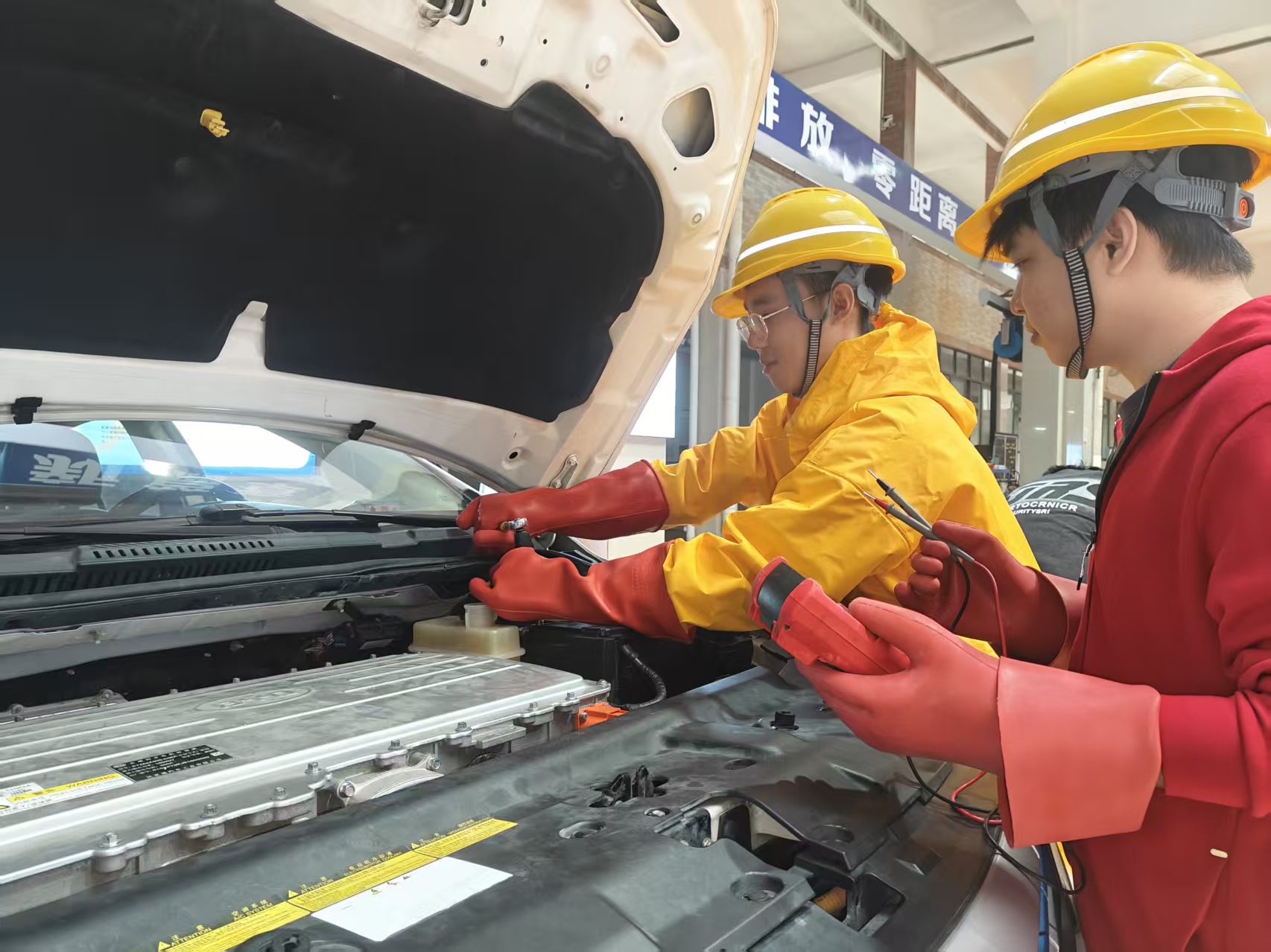 比赛重点围绕新能源汽车的结构原理、故障诊断与维护保养等核心技能展开。赛场上,选手们沉着冷静、操作规范,展现出扎实的专业基础和良好的职业素养。