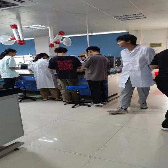 生理生化实训室是面向中药学、药学、药品经营与管理等专业学生的实践教学平台,主要承担《无机及分析化学》、《食品添加剂》、《天然药物化学》等为主的学科教学实训任务。本实训室以培养学生的玻璃仪器的使用、酸碱滴定反应、食醋中总醋量的测定操作能力为主要目的。