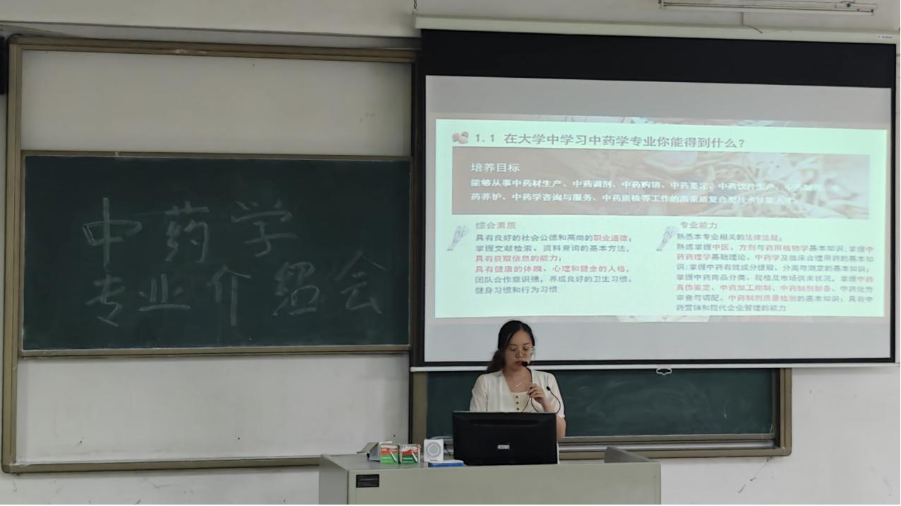 覃老师首先代表全院师生对2025级中药学新生的到来表示最热烈的欢迎。她在致辞中谈到,中医药学是中华民族的瑰宝,在健康中国战略中扮演着至关重要的角色。选择中药学专业,既是选择了传承千年的国粹,也是选择了一份守护人民健康的光荣使命。她勉励新生们要尽快转变角色,做好学业规划,既要“读万卷书”,深钻理论,也要“行万里路”,精进技能,努力成长为一名“懂药性、通医理、善传承、能创新”的高素质中药学人才。覃老师在发言中承诺,全体教师将恪尽职守,以学生为中心,做同学们学业上的指导者和成长路上的引路人。不负韶华,为传承和发展中医药事业贡献青春力量。