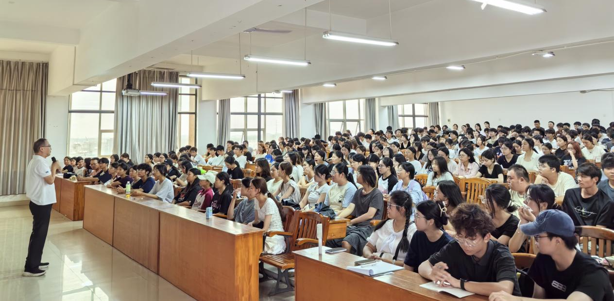:黄金谟 文:黄金谟 编辑:梁柱国 审核:陈道海2025年9月28日上午9点15分,我院在第一教学楼A605教室举行新生“开学第一课”,由陈道海院长亲自讲授,2025级药品经营与管理、药学和中药学专业全体新生、辅导员及骨干教师共同参会。