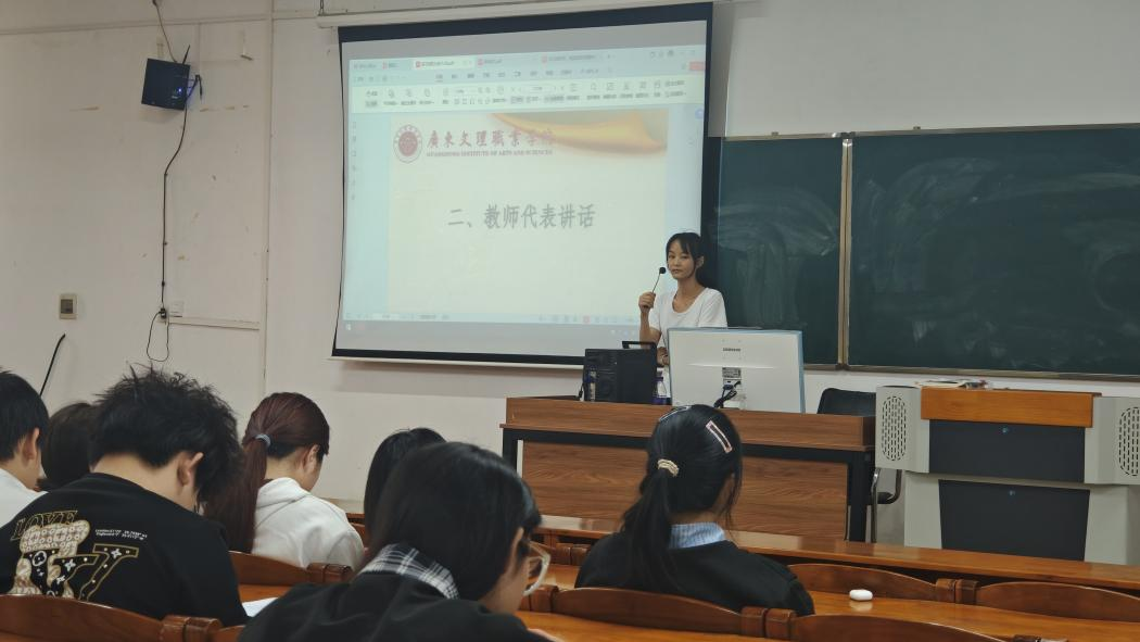 随后,实习指导教师代表黄梦蝶老师结合医药行业发展趋势,阐述了药品经营与管理专业实习的核心价值。黄梦蝶老师强调,同学们要以就业为导向,在实习中吃透行业规范,积累实战经验。黄梦蝶老师建议同学们在实习前梳理目标行业与岗位的核心需求,主动参与匹配度高的工作内容,通过多向企业前辈请教行业动态与岗位发展路径,避免实习“走马观花”。黄梦蝶老师对全体学生提出了三点期望。一是要“沉下心”,主动适应职场环境,摒弃浮躁心态,从基础工作做起,在实践中积累经验、锤炼技能;二是要“多思考”,带着校园学习中的疑问去实习,将药品经营流程、GSP管理规范等理论知识与岗位实际结合,形成“实践—反思—提升”的良性循环;三是要“守规矩”,严格遵守实习单位规章制度与学院实习管理要求,注重自身安全与职业形象,展现文理学子的良好风貌。