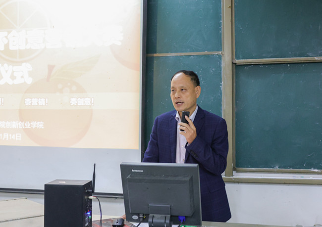 创新创业学院院长、教务处处长张佐营在启动仪式上的讲话提到,比赛是最好的教学方式,教学要以学生为主体,老师在讲台上无数次的卖力讲解,都比不上学生们亲自去体验一次。只有去试过,才会知道在工作中到底需要什么样的知识、需要学习什么、该怎样去学,这才是真正的以学生为主体。所以,赛场才是最好的课堂。学校为大家提供了良好的展示平台,能够让大家有足够的机会去实践。岭南红橙有限公司是学校的校办产业,全程赞助本次比赛,给大家提供销售场地,提供丰厚奖金。