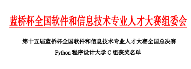 在备赛期间,我校莫君泽同学付出了大量的时间和精力,深入学习Python专业知识,不断提高自己的编程能力和技术水平,最终荣获第十五届蓝桥杯全国软件和信息技术专业人才大赛全国总决赛Python 程序设计大学 C 组三等奖。