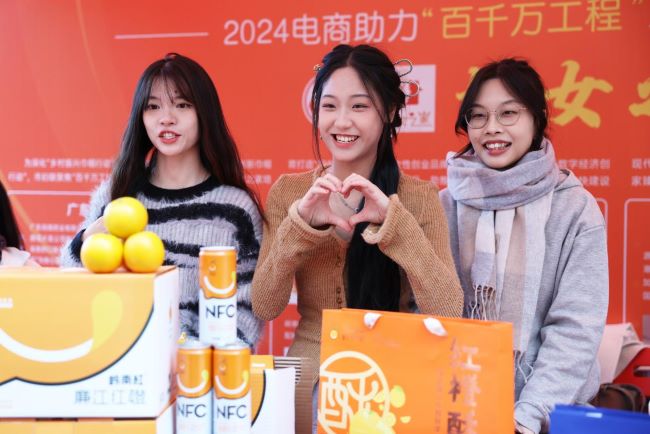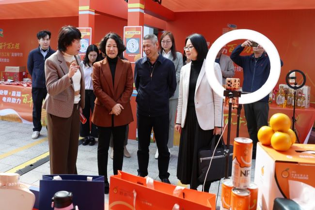 由湛江市商务局主办,湛江市妇女联合会协办的2024湛江市电商助力“百千万工程”直播带货产品资源对接会,于12月16日在湛江南站数字电商科技产业园举行。我校电子商务专业学生组成的直播团队在会上大放异彩,向与会嘉宾和线上观众精彩展示了广东岭南红橙有限公司的红橙、红橙汁及红橙酥等一系列名优特产品。