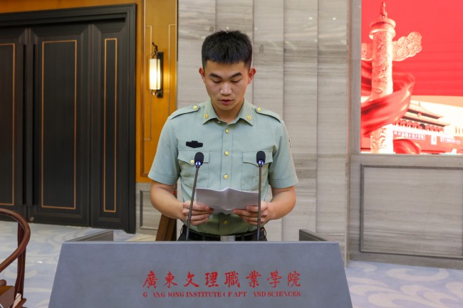 学员代表廖志霖在发言中向学校和各位老师表达了诚挚的感谢。他表示将把军人品质转化为奋进力量,以实干精神投身社会建设,在不同领域践行使命担当,并继续保持军人本色,在新时代征程中贡献智慧与力量。
