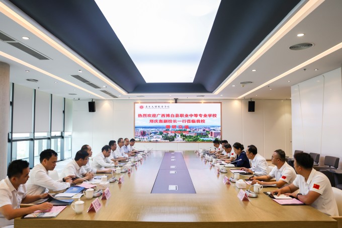 为进一步深化校际合作,共促职业教育提质增效。2025年4月16日,博白县职业中等专业学校副校长郑庆轰、李奕华率职能部门负责人及教师代表一行到我校调研交流。学校党委副书记刘春杰及相关部门负责人陪同参观。
