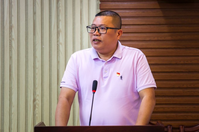 廉江市建筑设计院党支部书记何志强首先介绍了该院以“党建+业务”双轮驱动的发展模式,分享了其在BIM技术应用、绿色建筑设计及乡村振兴项目中的实践成果,并明确提出对高校科研支持与人才联合培养的需求。