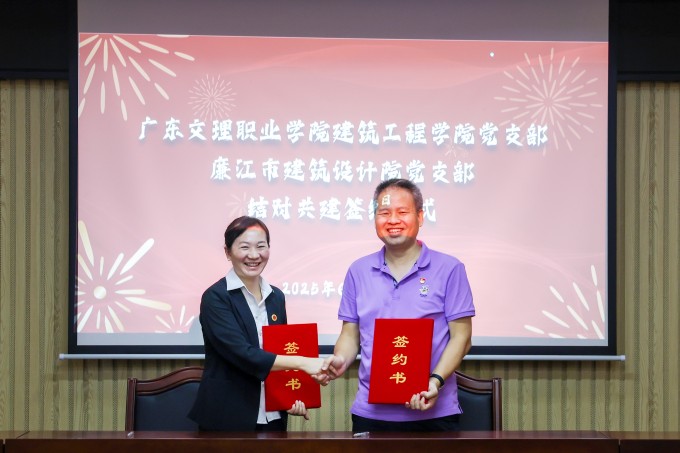 广东文理职业学院建筑工程学院副院长余莉莉与廉江市建筑设计院党支部书记何志强签署《党支部结对共建协议》,约定以“组织共建、资源共享、活动联办”为路径,探索“党建+项目”融合模式。