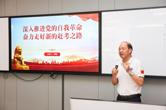 学校马克思主义学院院长李觐以《深入推进党的自我革命 奋力走好新的赶考之路》为题开展宣讲,深刻阐释了中国共产党的自我革命精神与新时代使命担当,号召师生以“赶考”姿态投身民族复兴伟业。