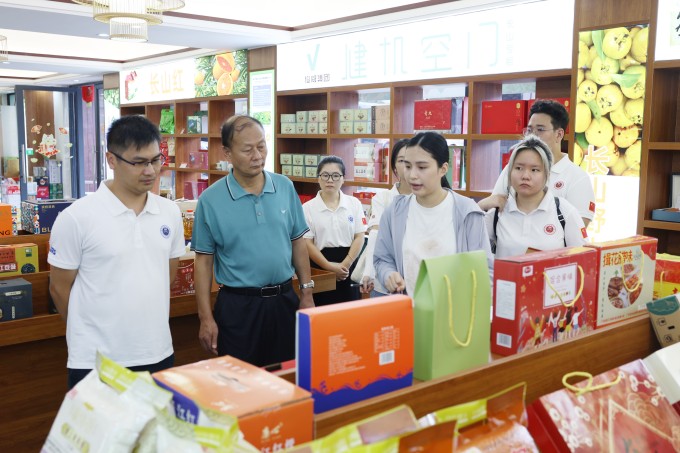在长山镇乡村振兴展销馆,长山镇团委书记庞燕云向师生详细介绍了当地以“茶产业+文旅”为核心的乡村振兴战略布局,重点展示了“客家一号”品牌的成长历程。