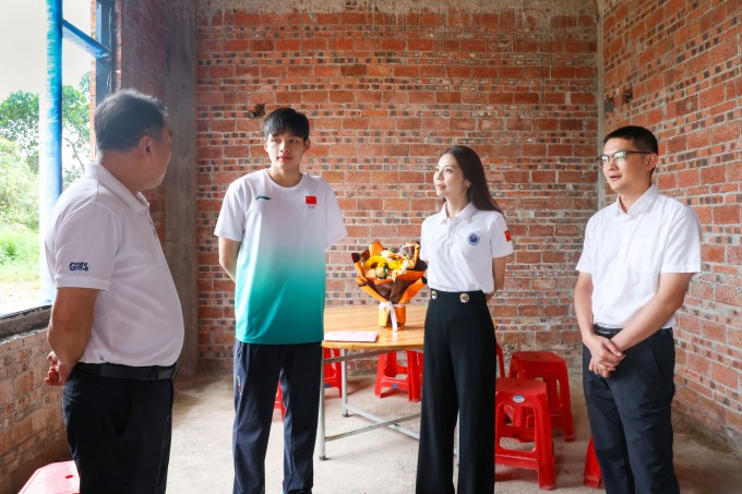 宣依娜副校长及刘春杰副书记带队首先抵达营仔镇兔仔围村世界冠军黄诗雨家,与营仔镇党委书记李海一起看望年仅15岁的自由潜水女子冠军黄诗雨。宣依娜副校长代表学校向黄诗雨赠送鲜花、学校文创纪念品、校办企业产品及2万元慰问金。