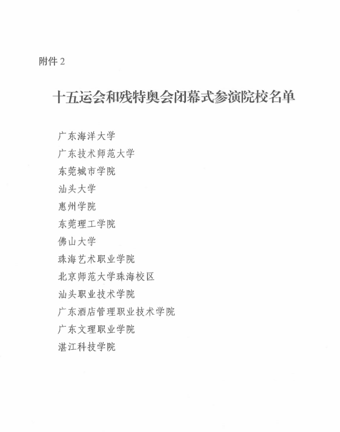 近日,广东省教育厅发布通知,正式公布第十五届全国运动会和全国第十二届残疾人运动会暨第九届特殊奥林匹克运动会(以下简称“十五运会和残特奥会”)开闭幕式参演学校名单。广东文理职业学院成功入选,将承担这一国家级重大活动的演出任务。