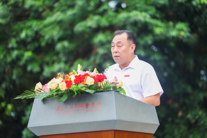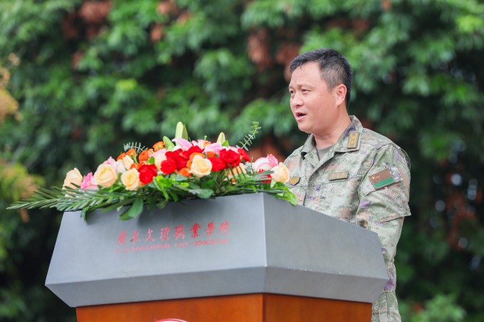 刘春杰副书记代表学校党委向承训的廉江市人民武装部官兵表示感谢,向全体参训新生致以问候。他指出,大学生军事训练是全民国防教育的重要组成部分,是同学们磨砺意志、锻造品格的宝贵机会,在此向同学们提出四点要求与希望:一要铸牢忠诚之魂,深植家国情怀;二要磨砺顽强意志,锤炼过硬作风;三要严守纪律规矩,凝聚团队力量;四要科学有序施训,确保安全圆满。