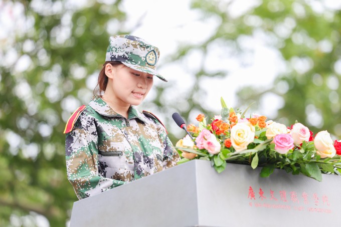 2025级新生代表杨陈茗慧同学发言时表示,大学生活需要自强不息的努力,要以自律为基,勤学为本也在集体中共同成长。她代表全体新生庄严承诺,一定会发扬不怕苦、不怕累的精神,圆满完成军训任务。
