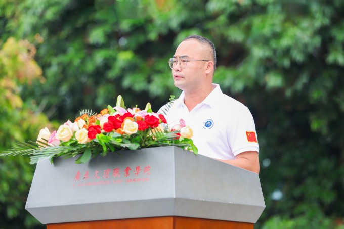 廉江市人民武装部副部长、军训旅旅长胡荣霞中校代表廉江市人民武装部,向对国防教育事业和军训工作的高度重视与大力支持的学校党委和各位领导表示感谢,向即将开始新生活的2025级全体新生表示祝贺。他向对全体教官提出三点要求:一要按纲施训、科学组训;二要文明带训、以身作则;三要密切配合、团结协作。