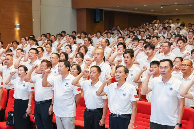 大会在庄严的《中华人民共和国国歌》中拉开序幕,伴随着铿锵有力的旋律,全体起立,表达对国家和教育事业的忠诚与敬爱。随后,全体人员在国旗下庄严宣誓,承诺将忠诚于教育事业,为国家培养出更多优秀人才而努力奋斗。