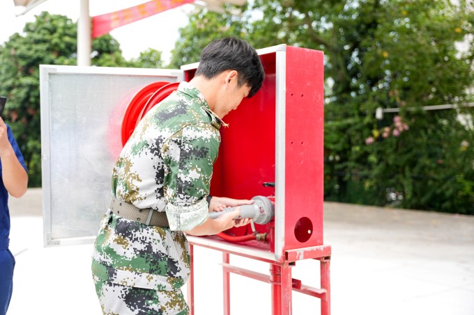 紧接着,消防员为大家介绍了室内消火栓的组成部分和使用场景。在实操环节中,学生代表在消防员的指导下完成了水带连接、展开及收纳等步骤。通过亲身体验,同学们不仅掌握了消火栓的基本使用技能,也更加认识到在扑救初期火灾时团队配合与规范操作的重要性。