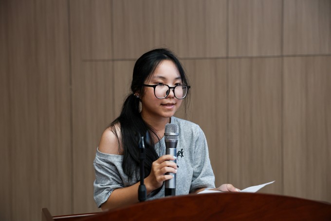 学生代表谢林君在发言中表达了内心的激动与对未来的期待。她回顾过往奋斗历程,表示将珍惜学校提供的优质平台,以知识充实自我,以创新引领未来,为实现升本目标不懈努力。