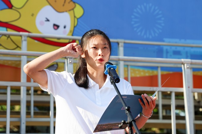 裁判员代表刘亮老师、运动员代表刘桢怡分别庄严宣誓,承诺将严格遵守赛事规则,发扬体育精神,确保运动会圆满成功。
