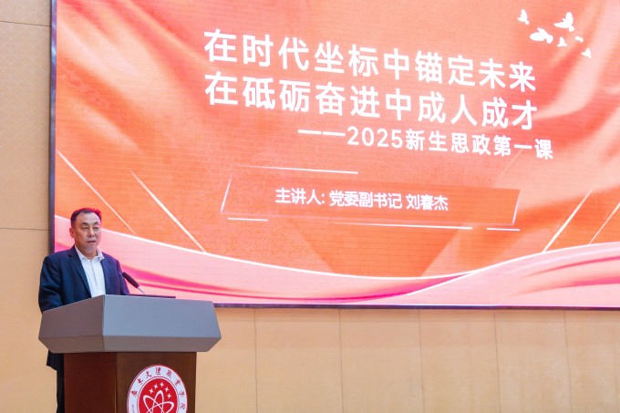 2025年12月8日上午,学校党委副书记刘春杰以《在时代坐标中锚定未来 在砥砺奋进中成人成才》为主题,为全体新生带来了一场思想深刻情感真挚的思政第一课。
