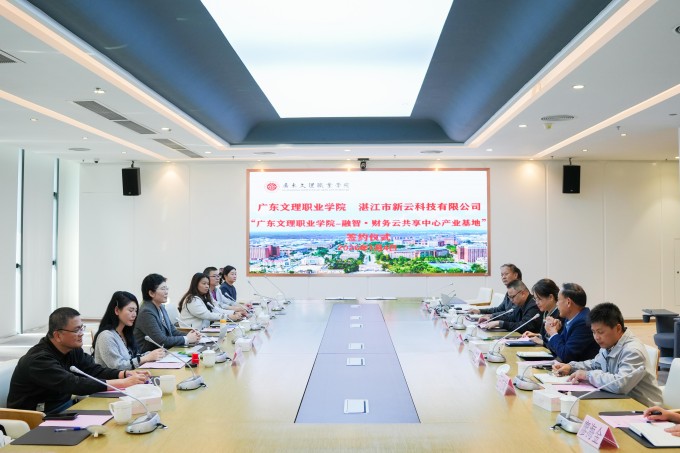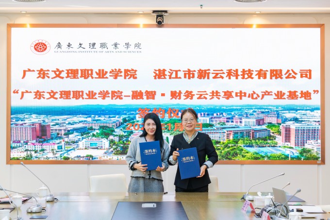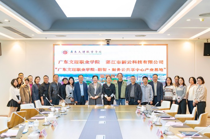 2026年1月4日,广东文理职业学院与湛江市新云科技有限公司合作共建“广东文理职业学院—融智·财务云共享中心产业基地”签约仪式在学校图书馆七楼视频会议室隆重举行。这是我校2026年度推动产教融合的“开篇力作”,标志着双方在协同育人、资源共享方面迈入更系统、更深入的实践阶段,为持续深化职业教育改革、服务区域产业发展奠定了又一坚实基础。