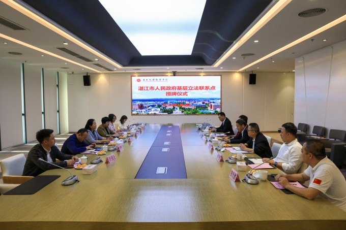 在热烈的气氛中,罗东玲书记向我校授予了“湛江市人民政府基层立法联系点”牌匾。这块牌匾,象征着双方共同播下了一颗珍贵的“法治种子”。