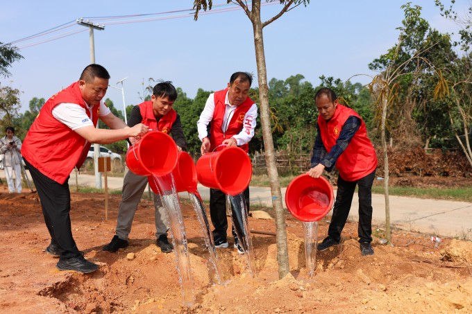 为深入践行习近平生态文明思想,聚焦“百县千镇万村高质量发展工程”,牢固树立和践行“绿水青山就是金山银山”理念,3月12日植树节当天,2026年湛江市直机关“党建引领 凝心聚‘绿’”联合主题党日活动在横山镇举行。作为协办单位之一,我校党委副书记刘春杰带领学校帮扶工作队参加活动,以实际行动助力乡村绿化与生态文明建设。
