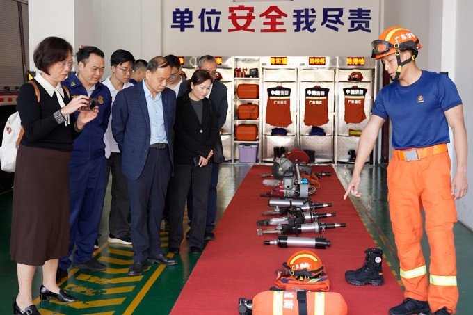广东文理职业学院校长助理张佐营介绍了学校的办学特色、专业建设布局及此次调研的核心目的,他表示,希望以此次调研为契机,搭建政校深度合作平台,推动消防救援技术专业建设与行业发展同频共振。建筑工程学院副院长余莉莉围绕消防救援技术专业人才培养方案优化、实训资源共建共享、学术交流合作等方面,提出与本地消防部门建立常态化交流合作机制的构想,期待通过优势互补、互惠共赢,切实提升人才培养质量。