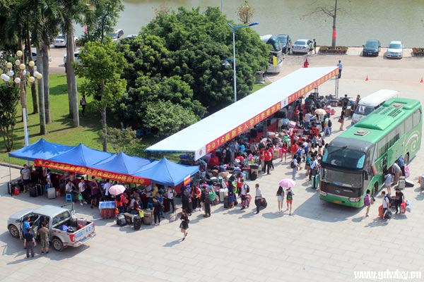 在湛江西火车站、廉江火车站、河唇火车站、廉江汽车总站,学院都设置有接待点,随时为新生提供周到服务。一位满头大汗却笑容灿烂的志愿者说:“身为新同学的学长,有义务为他们做好相应的引导和帮助,看到每一位新同学能够顺利报到入学,心里感到非常高兴。”