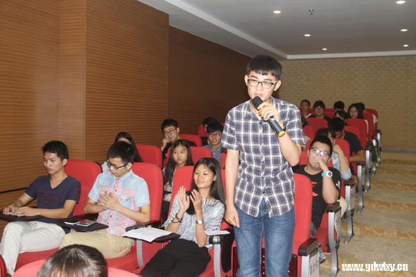 黄老师还就各国的风俗习惯不同而引起的矛盾提出了好的建议:出国留学我们首先要去了解当地文化,尊重各民族的宗教信仰,尊重各民族的风俗习惯,尊重各民族的语言文字。遇到问题要用和平方式解决问题,沟通最重要。黄祯运先生还提到,外国文化无时无刻不在潜移默化的影响着我们,我们要适当借鉴和吸收外国文化,同时也要把我们中国五千年的优秀文化推广走向世界。
