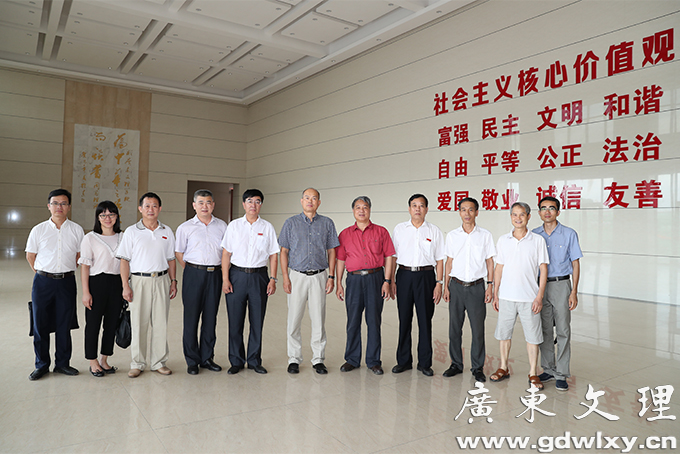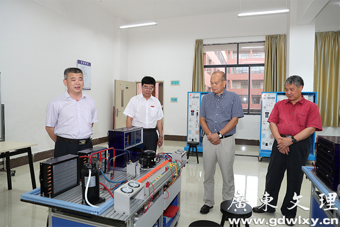 6月14日,广东医科大学党委书记、校长卢景辉一行到广东文理职业学院参观交流,在学院党委书记颜大胜,党委副书记、常务副院长李润,党委委员、副院长王南福等领导陪同下,卢景辉参观了学院教学大楼、实训中心、汇珍苑餐饮中心。
