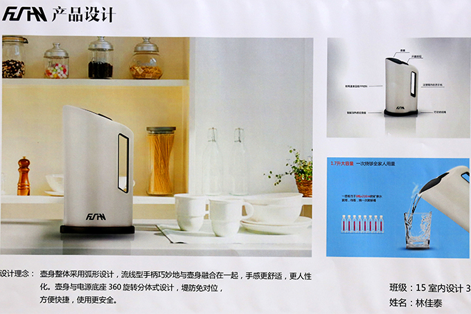 据了解,这个大赛由广东文理职业学院和湛江市知识产权局联袂主办,由广东文理职业学院艺术与传媒系和廉江市知识产权局共同承办,湛江富田电器有限公司协办,由广东文理职业学院艺术与传媒系具体操作。学院董事长宣承志、常务副院长李润、副院长汪富泉多次关切询问大赛进展情况,艺术与传媒系负责同志邓天杰、侯石明和黄小珊老师统筹规划,精心组织,充分调动和发挥全系师生的工作热情和创新精神,举一反三,独步蹊径。半年来,共设计电热壶作品360多件,企业形象宣传册20多本。这些作品构思巧妙,意味隽永,受到企业和专家好评。尤其是这些作品的市场可行性,功能实用性,低碳环保性,审美艺术性都有质的飞跃。这次大赛本着公平、公开、公正原则,认真听取领导、专家和企业家意见,严格选拔,严格审理,评出金奖2项,银奖4项,铜奖6项,优秀奖46项以及优秀指导教师奖4项。