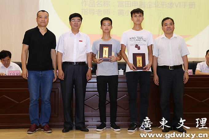 广东文理职业学院、湛江市知识产权局、廉江市知识产权局、湛江市富田电器有限公司等部门领导和嘉宾李润、汪富泉、宋加坤、胡锡刚、刘敬梅、谭健国、吴振、汪文志出席颁奖仪式,并在主席台就坐。广东文理职业学院科研处处长巩育军、艺术传媒系主任邓天杰、副主任侯石明,以及全院师生代表300多人参加颁奖大会。