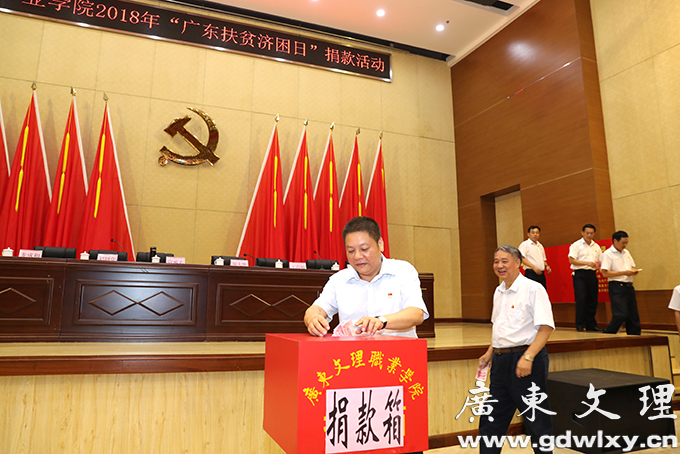 在学院董事长宣承志的带领下进行扶贫济困捐款
