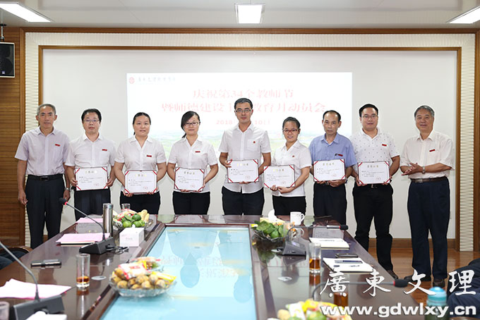 常务副院长刘周堂教授在会上作庆祝第34个教师节讲话,他指出,广东文理职业学院经过近几年的快速发展,学院在教学、科研以及管理等各方面均取得了优秀成绩,这是学院全体教职工共同努力的结果。刘周堂还对全体教职员工提出了几点希望:一是要爱岗敬业、无私奉献,忠诚党的教育事业;二是要修身立德、以身立教,争当教书育人模范;三是要以生为本、关爱学生,做学生成才的指导者。他希望全体教师能以高度的责任感、使命感,深入学习贯彻习近平新时代中国特色社会主义思想和党的十九大精神,努力加强师德修养,遵守教师职业道德规范,肩负起教书育人的光荣使命。