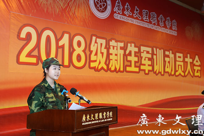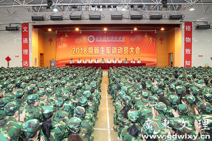 为增强大学生国防意识,强化大学生组织纪律观念,培养大学生吃苦耐劳精神,广东文理职业学院为2018级新生组建军训团,开展军训工作,于9月18日下午,在广东文理职业学院汇珍苑大礼堂召开军训动员大会。学院党委副书记常务副院长刘周堂,党委委员、副院长王南福,院长助理、工会主席宣承柱,党委委员、学生处长、团委书记、军训团政委刘春杰,教务处处长郝世栋,招生就业指导中心主任詹德贤等出席大会。部队教官代表,辅导员代表,2018级全体新生参加大会,会议由王南福主持。