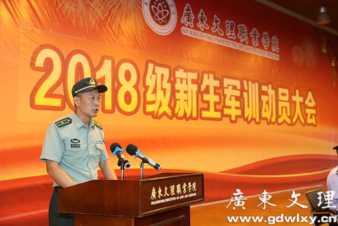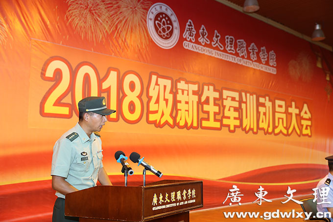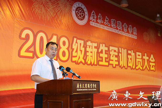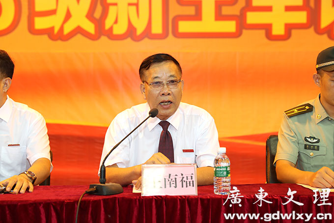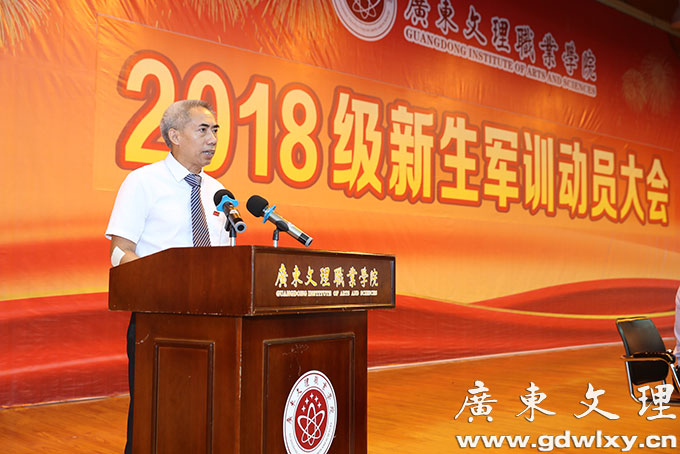 刘周堂代表学院向全体参训同学提出几点希望和要求。第一,提高认识,端正态度。大学生参加军训是落实《中华人民共和国国防教育法》和《兵役法》等有关法律的行为体现,是学生在校期间履行兵役义务、接受国防教育的基本形式,也是我们大学生应尽的义务和责任。第二,严格要求,刻苦训练。军训,就是要像军人那样进行军事训练。中国人民解放军之所以能战无不胜、攻无不克,根本原因就是一不怕苦,二不怕死,敢于接受任何挑战。这种大无畏的精神既来自于坚定的理想信念和使命担当,也来自于刻苦的军事训练而具有的过硬的军事本领。第三,互尊互爱,团结协作。军训既是课堂,教官就是我们的老师,学生尊敬老师,听从老师的训导,这是天经地义的,也是我们中华民族的优秀传统。他在希望承训教官们能高标准、严要求,精心指导,科学施训,把部队的好作风带到广东文理职业学院,使同学们在军训中受锻炼、强体魄、增知识、长才干,为自己的大学生活书写好第一份满意的答卷。
