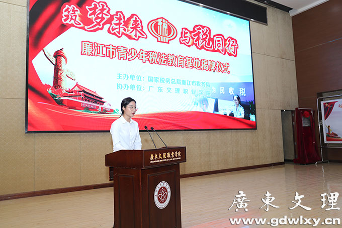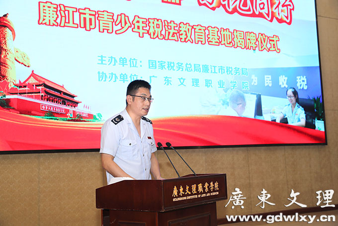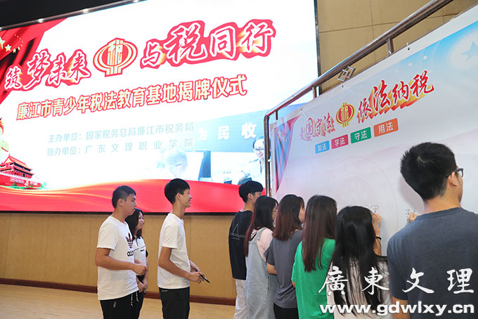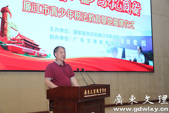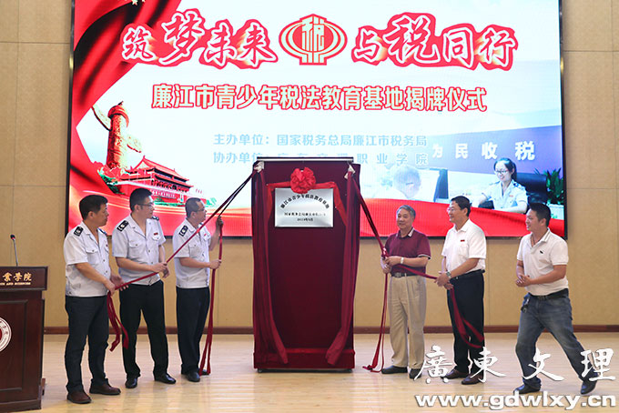 广东文理职业学院与国家税务总局廉江市税务局有关领导共同为廉江市青少年税法教育基地揭牌