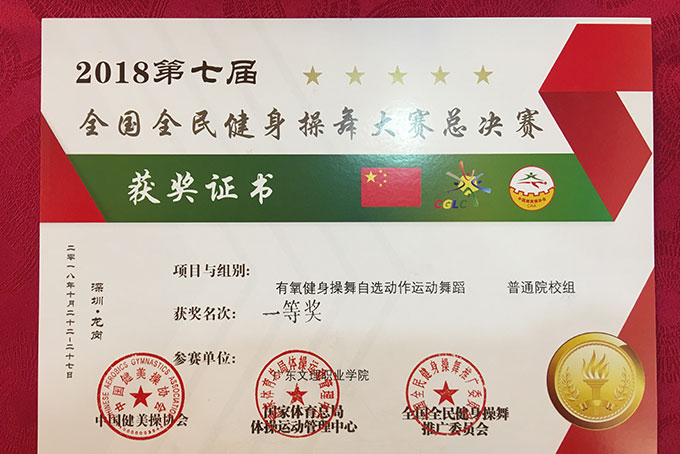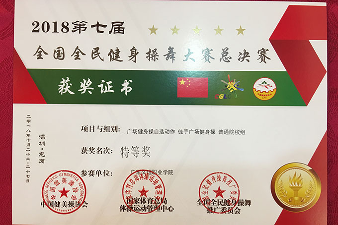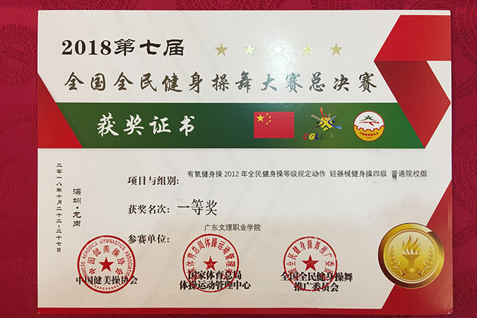 广东文理职业学院体操队代表队在比赛中,队员个个精神饱满,活力四射,为广大观众奉献了动感十足的精彩表演。她们明快奔放的动作挥洒出了青春的风采,新颖别致的造型展现了力与美的结合,严整而灵动的队列诠释了青春的激扬与奔放。经过五天的激烈角逐,最终以高分力压群芳,,分别获得一项特等奖两项一等奖的好成绩!(文/钟文 图/李怡 编辑/钟文 审核/刘培林)