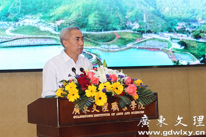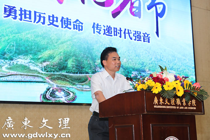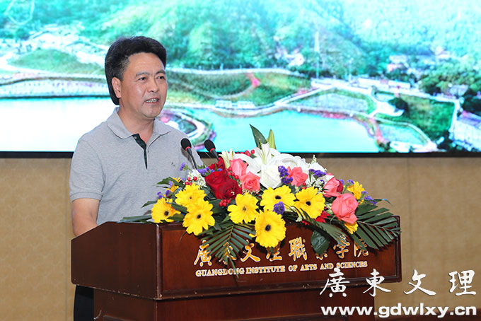 学院党委副书记、常务副院长刘周堂致词。他在讲话中指出,在廉江市委市政府的帮助和各位媒体朋友们的关心下,学院各项工作都取得了长足的发展。特别是林海武书记多次到文理调研指导工作和现场办公,为学校发展建设排忧解难,因此这些成绩的取得离不开市委市政府的殷切关心和大力支持,离不开新闻媒体的积极宣传和垦诚帮助,并向长期一直关心和支持学院各项工作的市委市政府新闻媒体表示衷心的感谢。