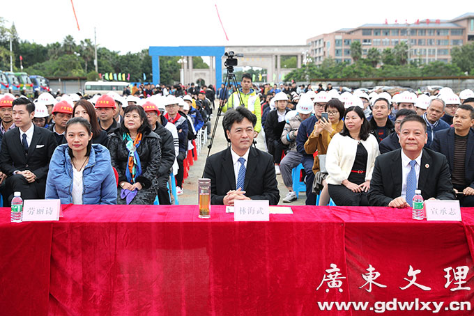 12月9日上午,广东文理职业学院奥克体育中心举行了隆重的动工仪式。廉江市委书记林海武,市委副书记庞晓冬,市人大常委会主任李世东,市政协主席吴永光,广东文理职业学院董事长宣承志、奥运跳水冠军劳丽诗以及相关职能部门负责人,项目建设单位的代表,学院建筑工程系全体师生等出席了仪式。副市长崔军、奥运冠军劳丽诗分别致辞祝贺,学院董事长宣承志发表讲话,廉江市委书记林海武宣布:广东奥克体育中心正式动工!