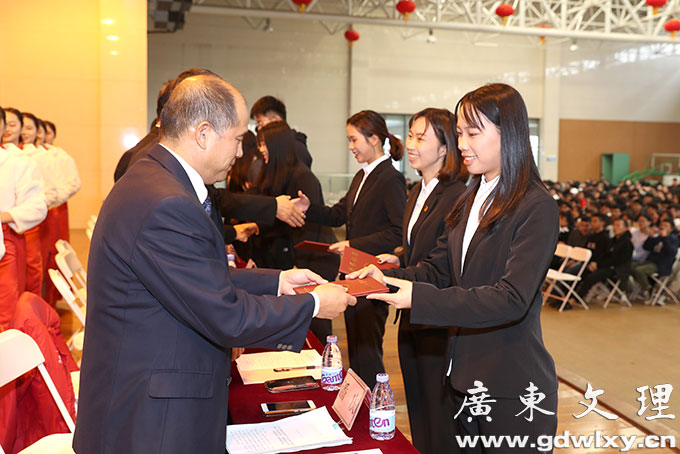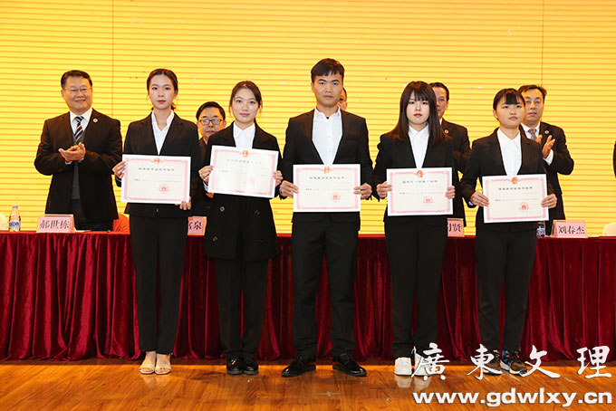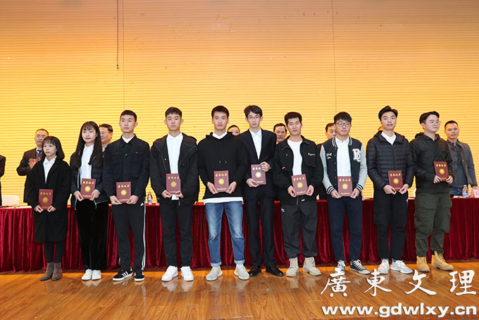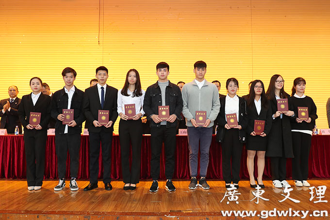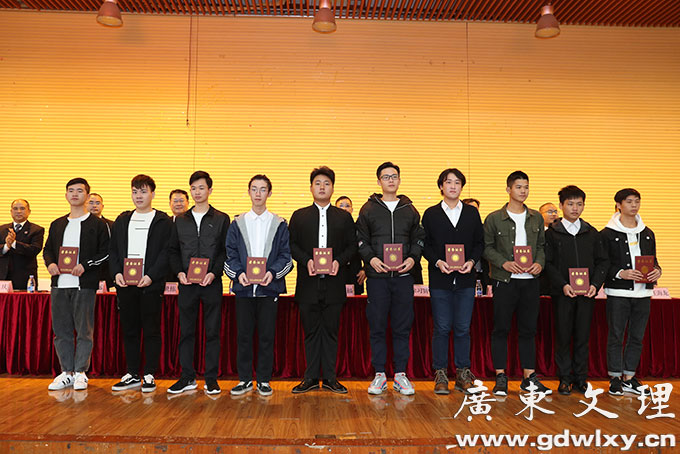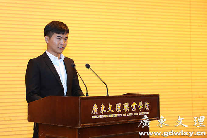 副院长汪富泉宣读《广东文理职业学院2017—2018学年度“先进班集体”的表彰决定》。副院长涂习贤宣读《广东文理职业学院2017—2018学年度“三好学生”“优秀学生干部”的表彰决定》。学生处奖助学中心主任潘庆同志宣读《广东文理职业学院2017-2018学年度“国家奖学金”“国家励志奖学金”“学院奖学金”的表彰决定》,参会领导向获奖同学和班级进行颁奖。学生代表黄家树同学发表获奖感言。
