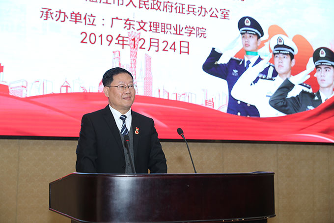 学院院长郝世栋,廉江市委常委、市人民武装部部长张正和,学院学工部部长、武装部部长刘春杰出席宣讲活动。